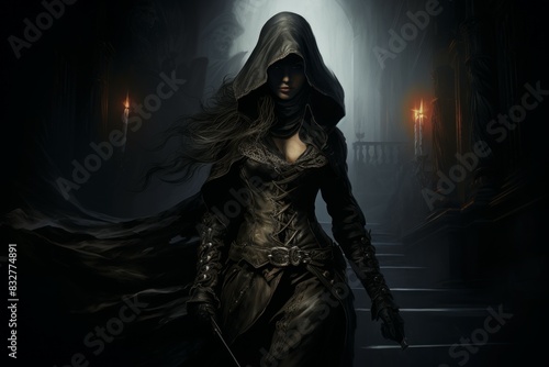 Wall mural : A stealthy and elusive rogue, moving in shadows and striking with deadly precision - - generative ai