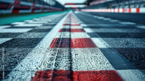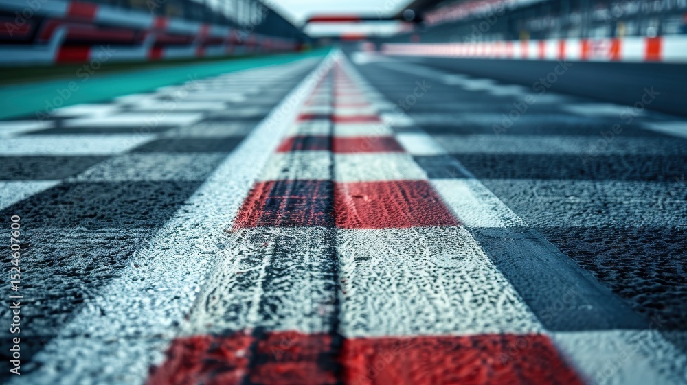 Wall mural a striking close-up view of a finish line on an empty race track, featuring a checkered pattern that - Wall murals Wall mural a striking close-up view of a finish line on an empty race track, featuring a checkered pattern that - Wall murals