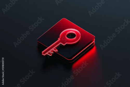 The watermark will not be included on Wall mural.: A striking neon key icon illuminated in red rests on a glossy surface, creating a modern and sleek d