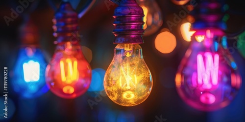 Wall mural a string with multiple light bulbs hanging from it, suitable for decorative purposes or as a prop in - Wall murals Wall mural a string with multiple light bulbs hanging from it, suitable for decorative purposes or as a prop in - Wall murals