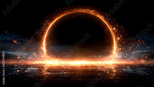 Wall mural a stunning depiction of a glowing ring of fire emerging from a dark void, symbolizing energy and the