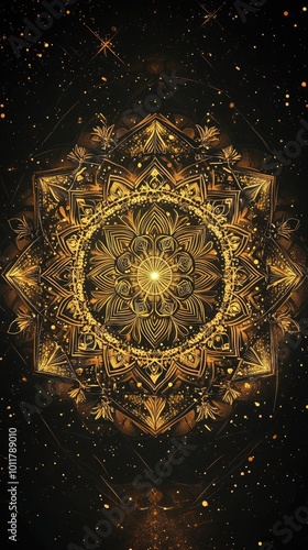 Wall mural a stunning golden mandala design with intricate details set against a cosmic background, evoking a s - Wall murals Wall mural a stunning golden mandala design with intricate details set against a cosmic background, evoking a s - Wall murals