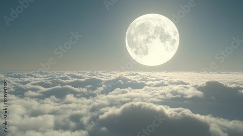 Wall mural a stunning moon in the sky, gliding over endless clouds with its light shining brightly. this seamle