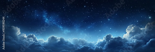 Wall mural a stunning night sky filled with twinkling stars and fluffy clouds. this abstract blue background ev