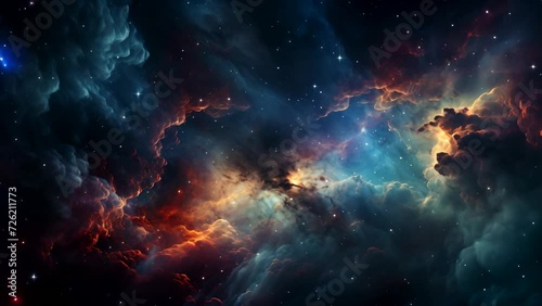 Wall mural a stunning view of a cosmic nebula, displaying vibrant hues and starlight in deep space