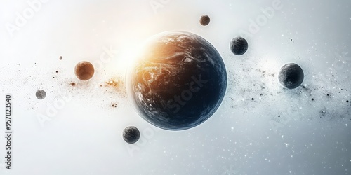 The watermark will not be included on Wall mural.: A stunning view of the universe showcasing earth surrounded by distant planets and a luminous star i