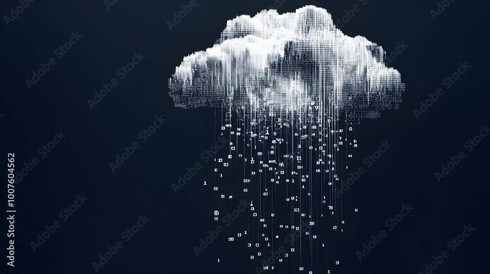 Wall mural : A stylized representation of a digital cloud with binary code raining down, emphasizing abstract tec
