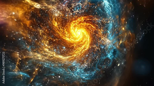 Wall mural a swirling galaxy in space with a bright orange core and blue outer edges - Wall murals Wall mural a swirling galaxy in space with a bright orange core and blue outer edges - Wall murals