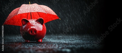 A symbolic image of a piggy bank with an umbrella representing financial security stock photo with sWall mural