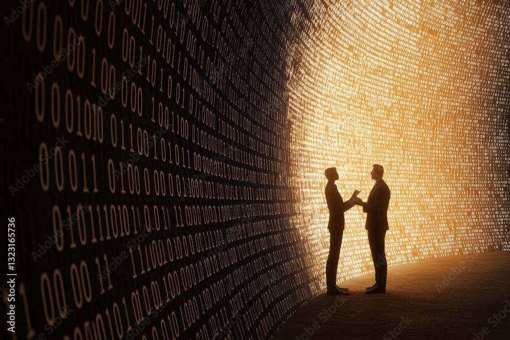 Wall mural a symbolic representation of machine learning, with a robotic assistant communicating with a busines - Wall murals Wall mural a symbolic representation of machine learning, with a robotic assistant communicating with a busines - Wall murals