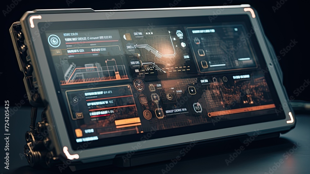 Wall mural a tablet computer displaying ai control interfaces, augmented reality overlays, and online coordinat - Wall murals Wall mural a tablet computer displaying ai control interfaces, augmented reality overlays, and online coordinat - Wall murals