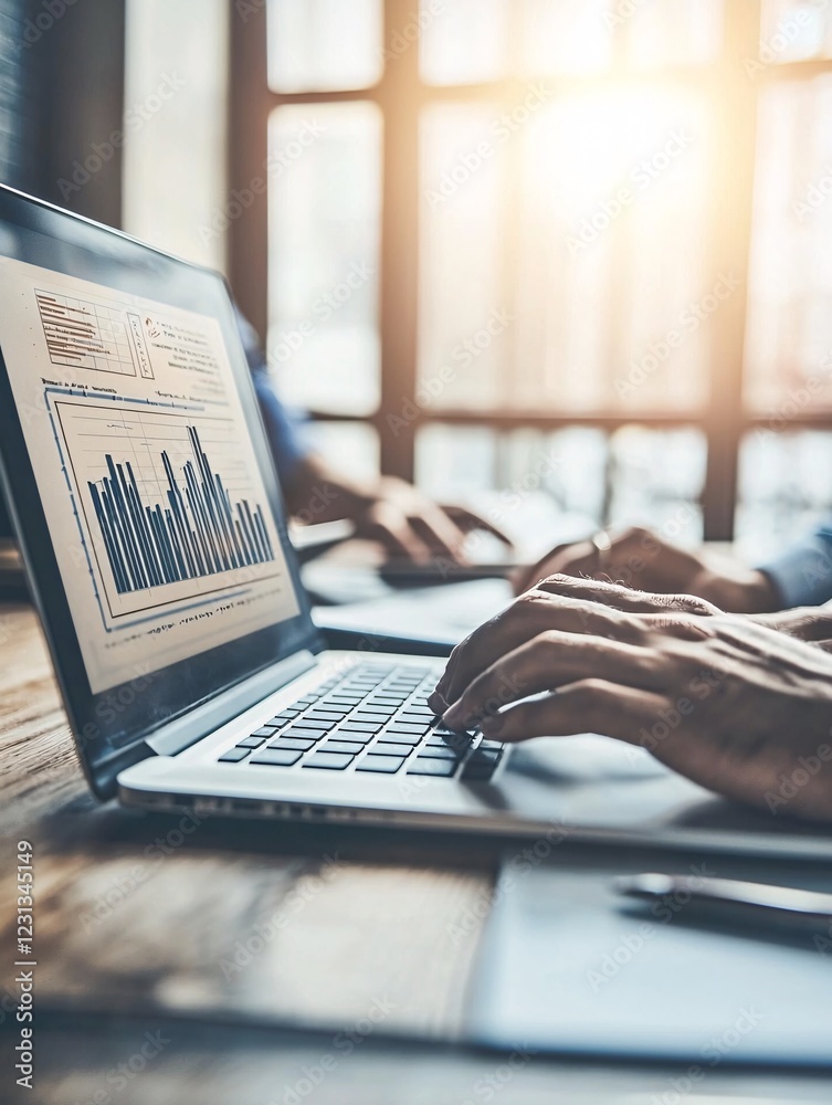 Wall mural a team brainstorming with a laptop displaying customer feedback data, surrounded by creative sketche