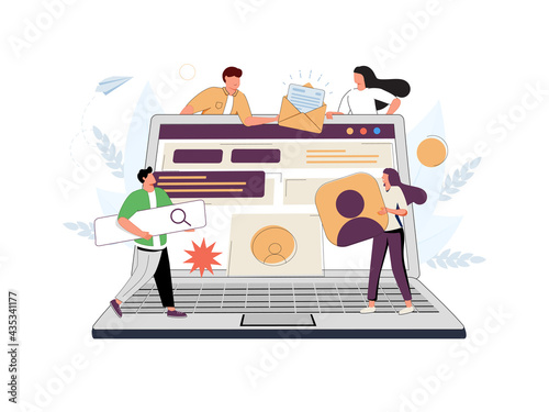 Wall mural a team of people is developing a website by filling it with functions, concept vector illustration f - Wall murals Wall mural a team of people is developing a website by filling it with functions, concept vector illustration f - Wall murals