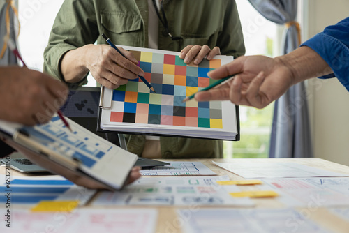 Wall mural a team of ui ux web designers is working together to develop a mobile responsive website by previewi - Wall murals Wall mural a team of ui ux web designers is working together to develop a mobile responsive website by previewi - Wall murals