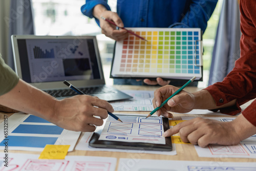 Wall mural a team of ui ux web designers is working together to develop a mobile responsive website by previewi - Wall murals Wall mural a team of ui ux web designers is working together to develop a mobile responsive website by previewi - Wall murals