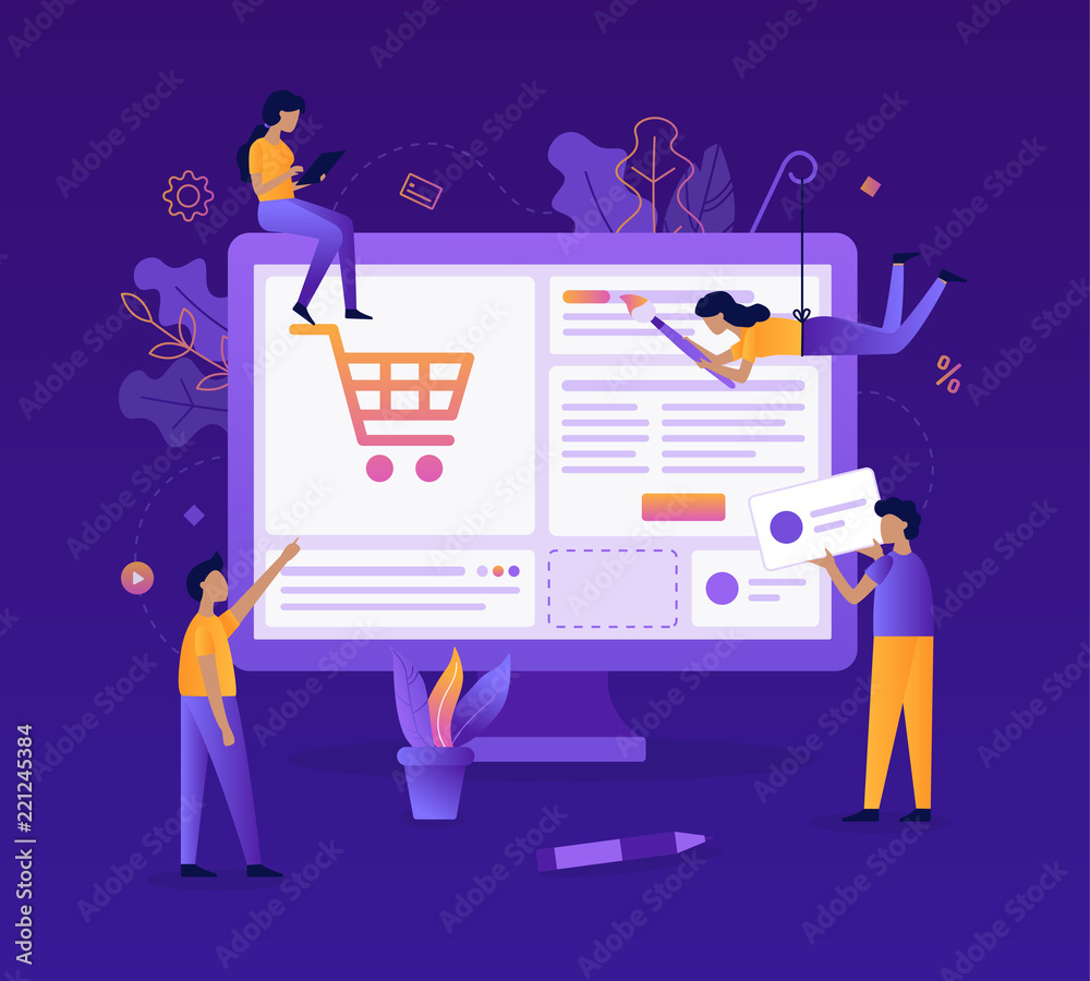 Wall mural a team of web developers design an online store. teamwork project. website development. flat vector  - Wall murals Wall mural a team of web developers design an online store. teamwork project. website development. flat vector - Wall murals