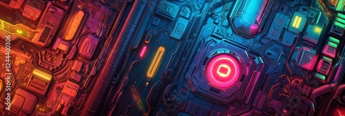 Wall mural a tech background with blue and green glowing digital circuitry and data transfer patterns - Wall murals Wall mural a tech background with blue and green glowing digital circuitry and data transfer patterns - Wall murals