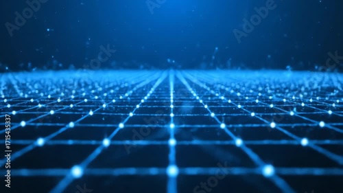 The watermark will not be included on Wall mural.: A technological, seamlessly looping video featuring a blue starlight glow forming a grid of intercon