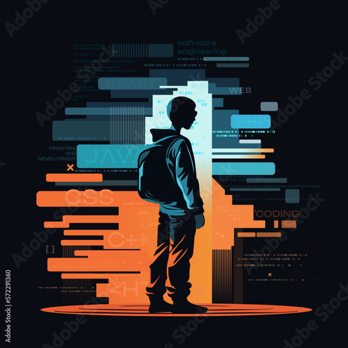 Wall mural a teenager studying programming languages course banner advertisement flat vector cartoon character, - Wall murals Wall mural a teenager studying programming languages course banner advertisement flat vector cartoon character, - Wall murals
