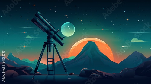 Wall mural a telescope in an observatory, exploring the stars and planets in the vast night sky