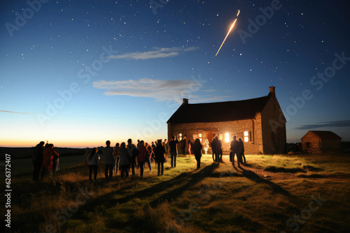 Wall mural a time-lapse image of a meteor shower streaking across the night sky, creating a celestial spectacle - Wall murals Wall mural a time-lapse image of a meteor shower streaking across the night sky, creating a celestial spectacle - Wall murals