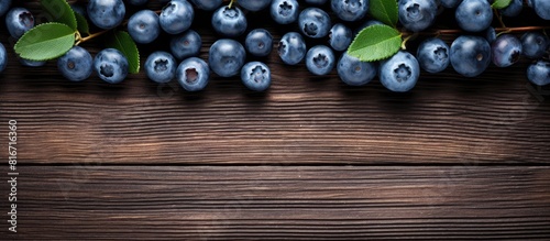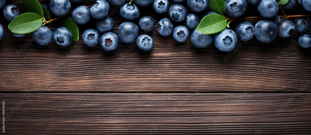 Wall mural a top down view of fresh blueberries is captured against a rustic wooden background providing ample