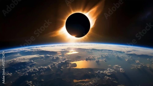 Wall mural a total solar eclipse as seen from space, with the earth's atmosphere and clouds in the foreground. - Wall murals Wall mural a total solar eclipse as seen from space, with the earth's atmosphere and clouds in the foreground. - Wall murals