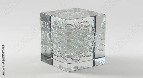 Wall mural a transparent cube-shaped object filled with numerous iridescent bubbles creates a captivating visua