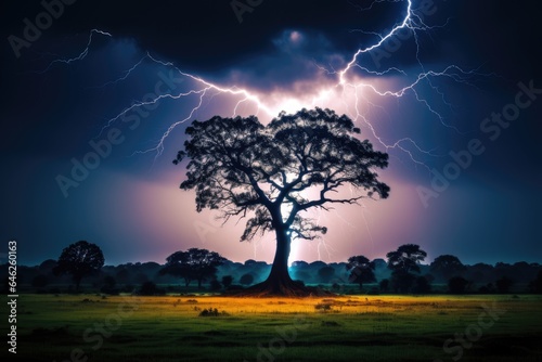 The watermark will not be included on Wall mural.: A tree in nature with clouds in the sky and lightning -