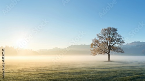 The watermark will not be included on Wall mural.: A tree stands in a field with a cloudy sky in the background