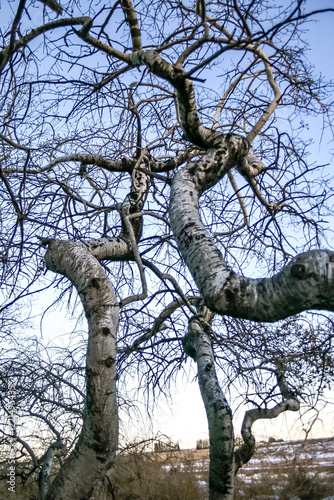The watermark will not be included on Wall mural.: A tree with a trunk that is bent and twisted