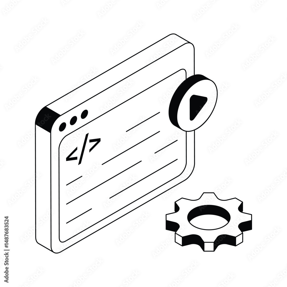 The watermark will not be included on Wall mural.: A trendy isometric outline icon of web coding interface