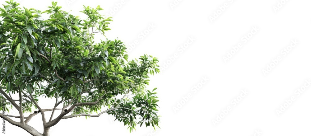Wall mural a tropical tree with leafy branches on a white isolated backdrop ideal for a copy space image