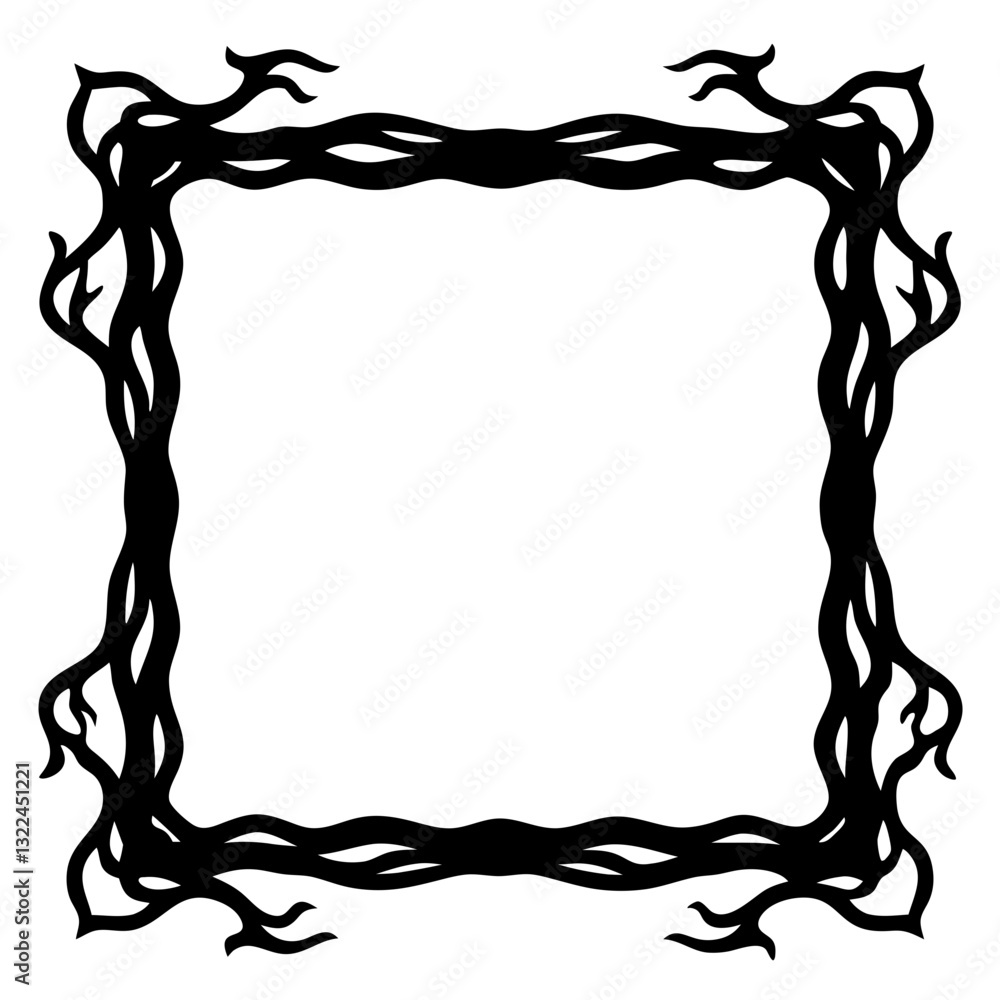 Wall mural a unique square frame composed of intertwined branches and twigs in a dark color. the frame is elega