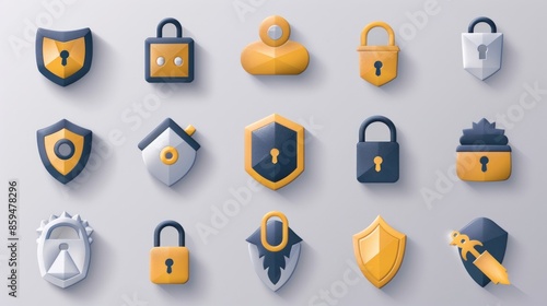 The watermark will not be included on Wall mural.: A variety of 2d icons for security and privacy apps and websites - the set includes symbols for locks