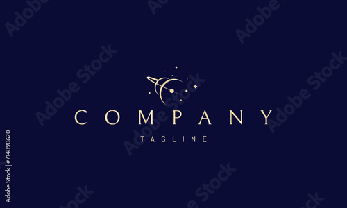 Wall mural a vector golden logo with an abstract image of two planets with an orbit against a background of sta