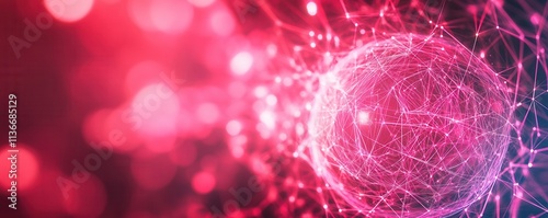Wall mural a vibrant, abstract representation of a glowing sphere, interconnected with network-like structures,