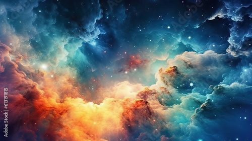 The watermark will not be included on Wall mural.: A vibrant, colorful space galaxy cloud nebula, a mesmerizing vista of the starry night cosmos, a tes