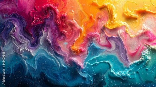 Wall mural a vibrant, multicolored abstract image of liquid waves with a fluid, dynamic pattern