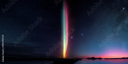 Wall mural a vibrant, multicolored streak of light cuts through the night sky, illuminating the stars above a s