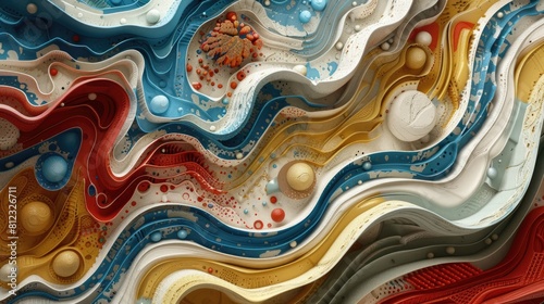 The watermark will not be included on Wall mural.: A vibrant 3d rendering captures an abstract piece of surreal art showcasing a textured background wi
