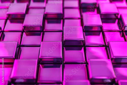 The watermark will not be included on Wall mural.: A vibrant abstract background featuring a grid of shiny, reflective purple cubes creating a modern a