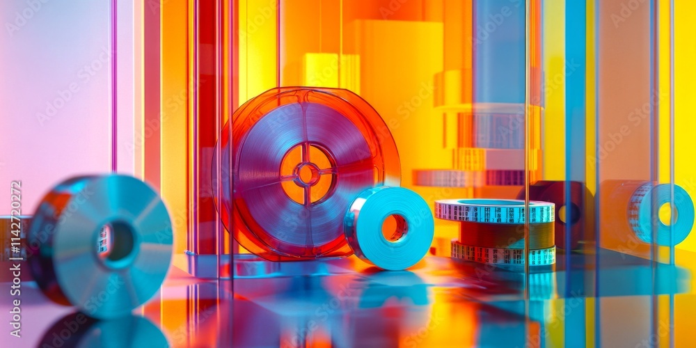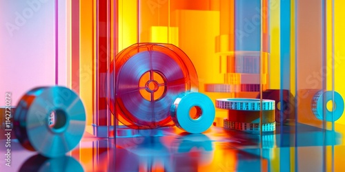 Wall mural a vibrant abstract composition featuring circular shapes and colorful translucent panels. the interp - Wall murals Wall mural a vibrant abstract composition featuring circular shapes and colorful translucent panels. the interp - Wall murals