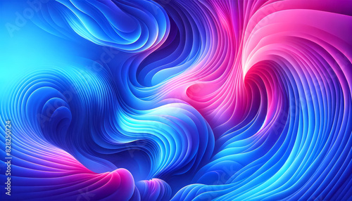 Wall mural : A vibrant abstract swirl design in shades of blue and pink with a smooth gradient, set against a com