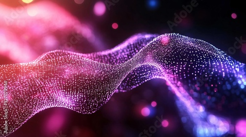 Wall mural a vibrant abstract wave of colorful particles flowing through a dark background, creating a mesmeriz