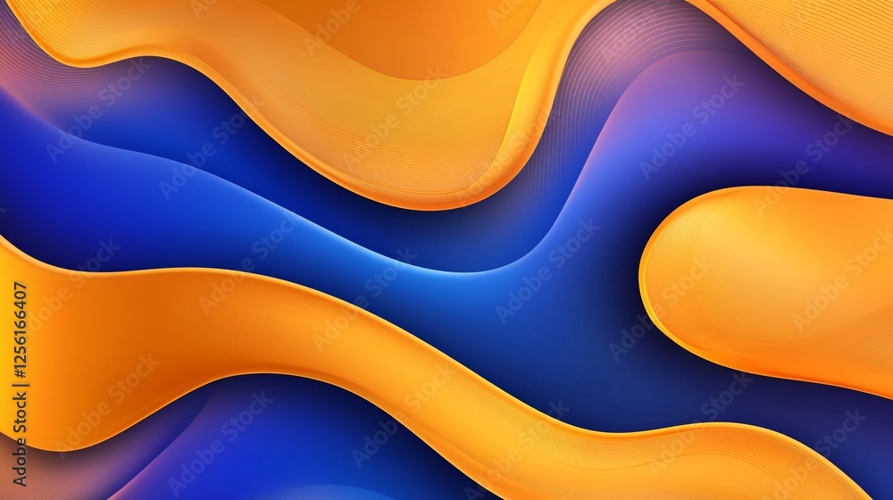 The watermark will not be included on Wall mural.: A vibrant abstract wave pattern in orange and blue tones, creating a dynamic and energetic compositi