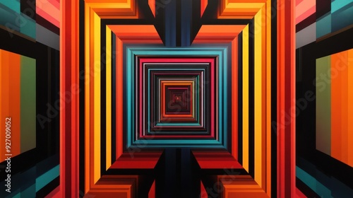 The watermark will not be included on Wall mural.: A vibrant and colorful tunnel with geometric patterns creates an optical illusion -