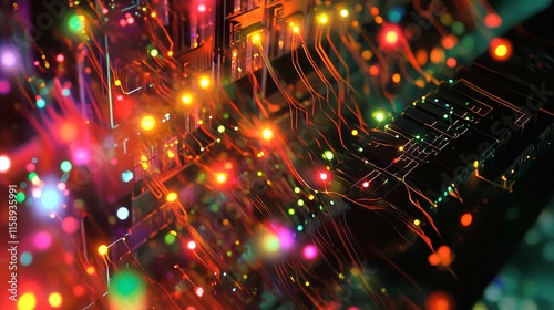 Wall mural a vibrant array of colorful lights intertwines with intricate circuit patterns, creating a mesmerizi