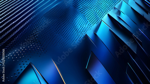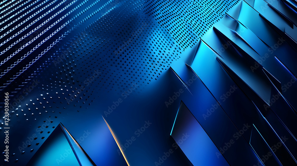 Wall mural : A vibrant blue gradient background with a metallic texture and sharp, futuristic lighting effects