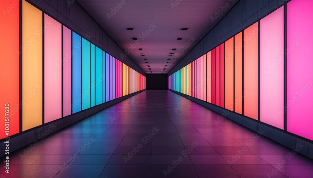 Wall mural a vibrant corridor illuminated with colorful lights creating a stunning visual experience that capti - Wall murals Wall mural a vibrant corridor illuminated with colorful lights creating a stunning visual experience that capti - Wall murals